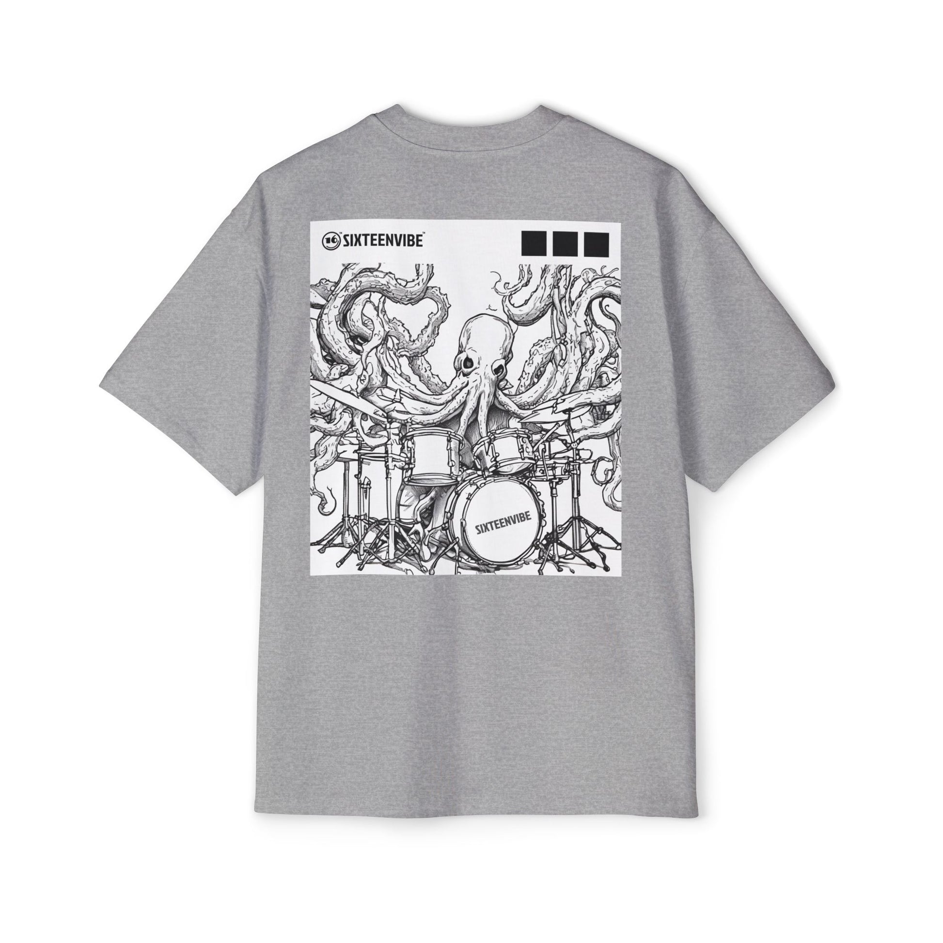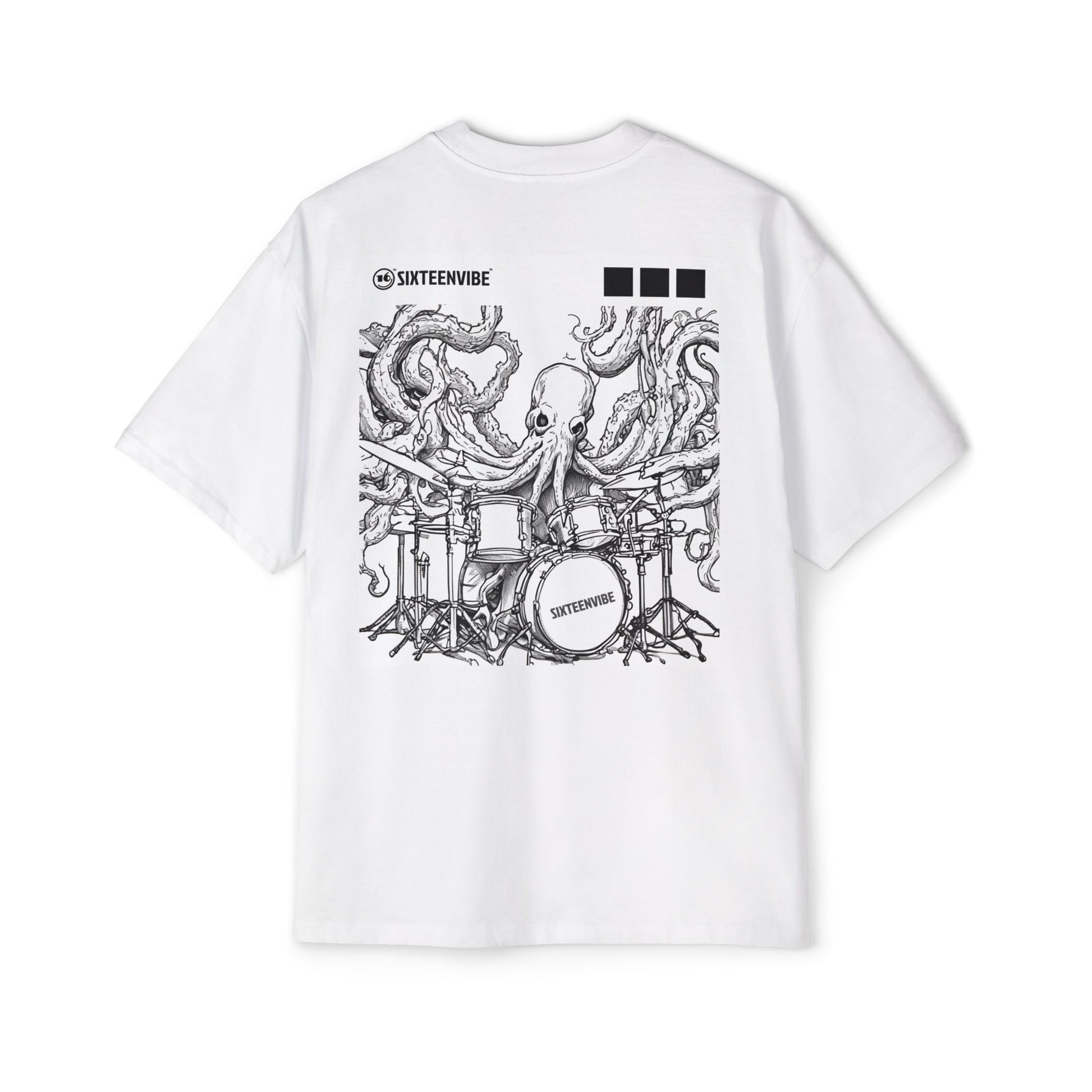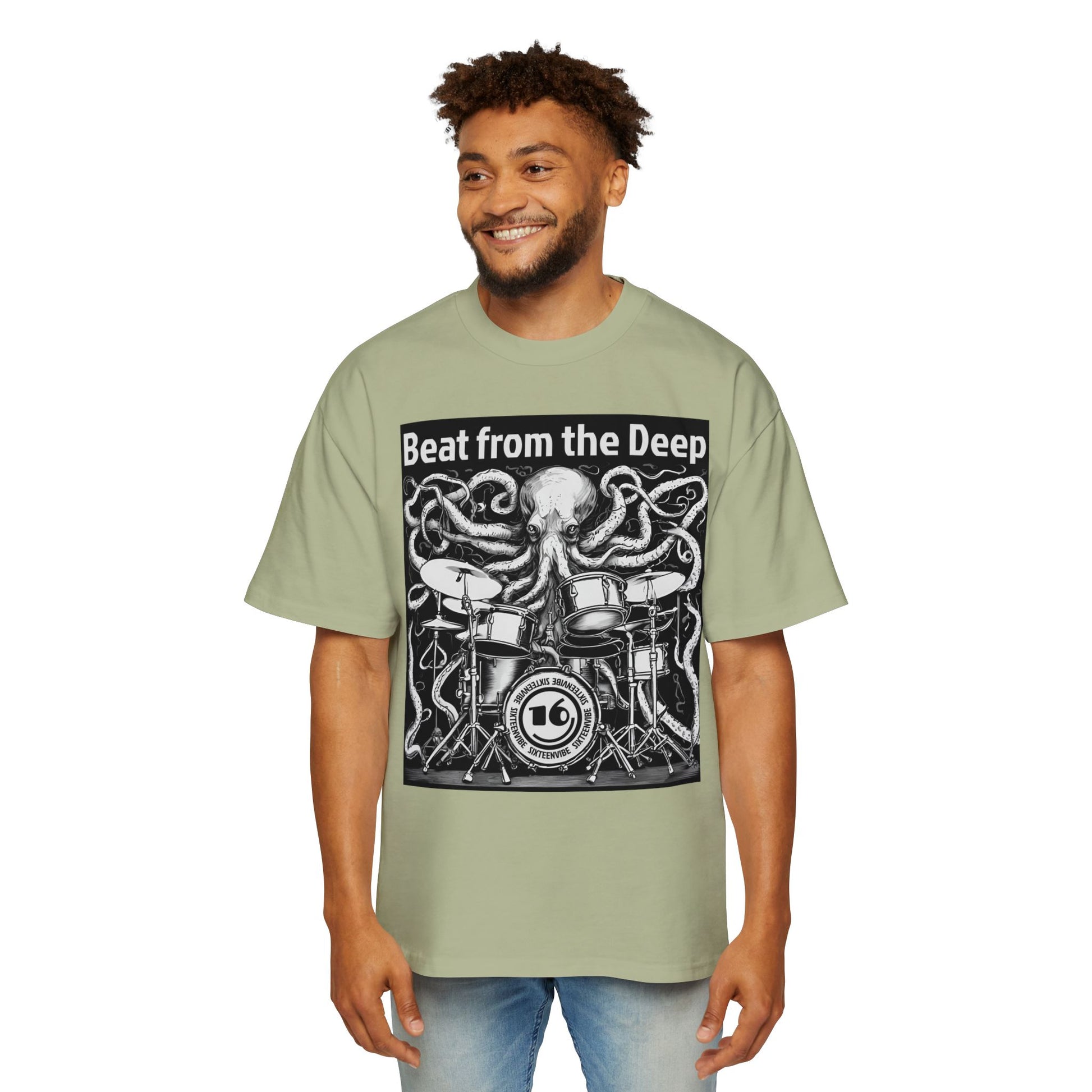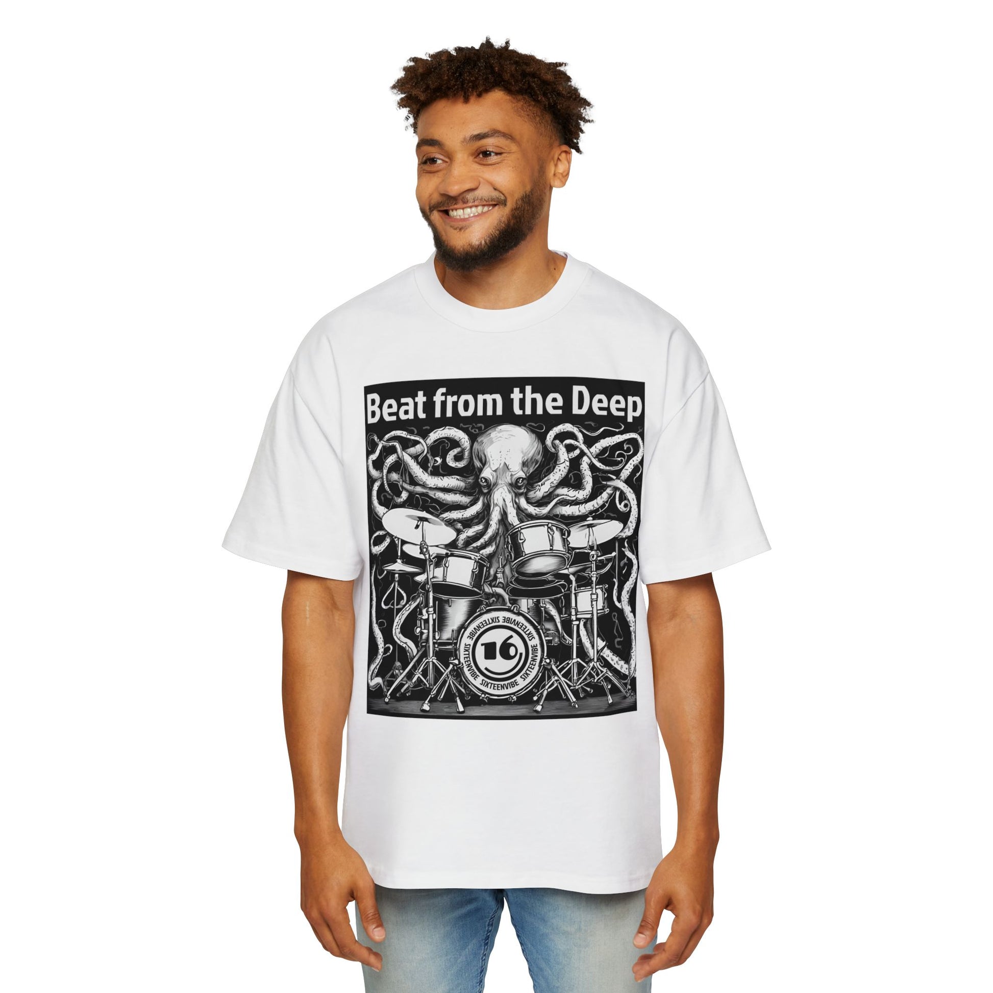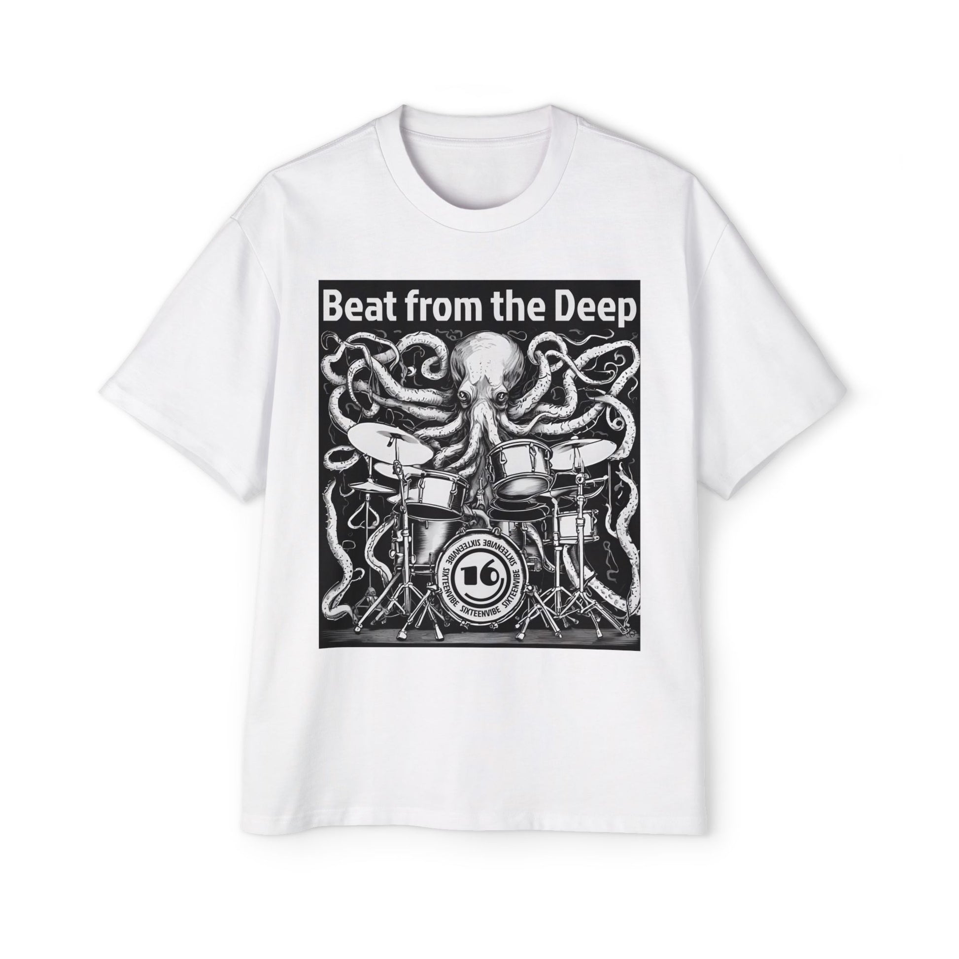 This bold oversized tee features a surreal black line art illustration of a surreal octopus drumming with the tentacles, set against a clean background. The phrase “Beat from the Deep” brings the design to life, adding an extra layer of attitude and energy. Perfect for music lovers and anyone who appreciates eye-catching, offbeat style. Great for concerts, festivals, casual days out, or anytime you want to make a bold statement.