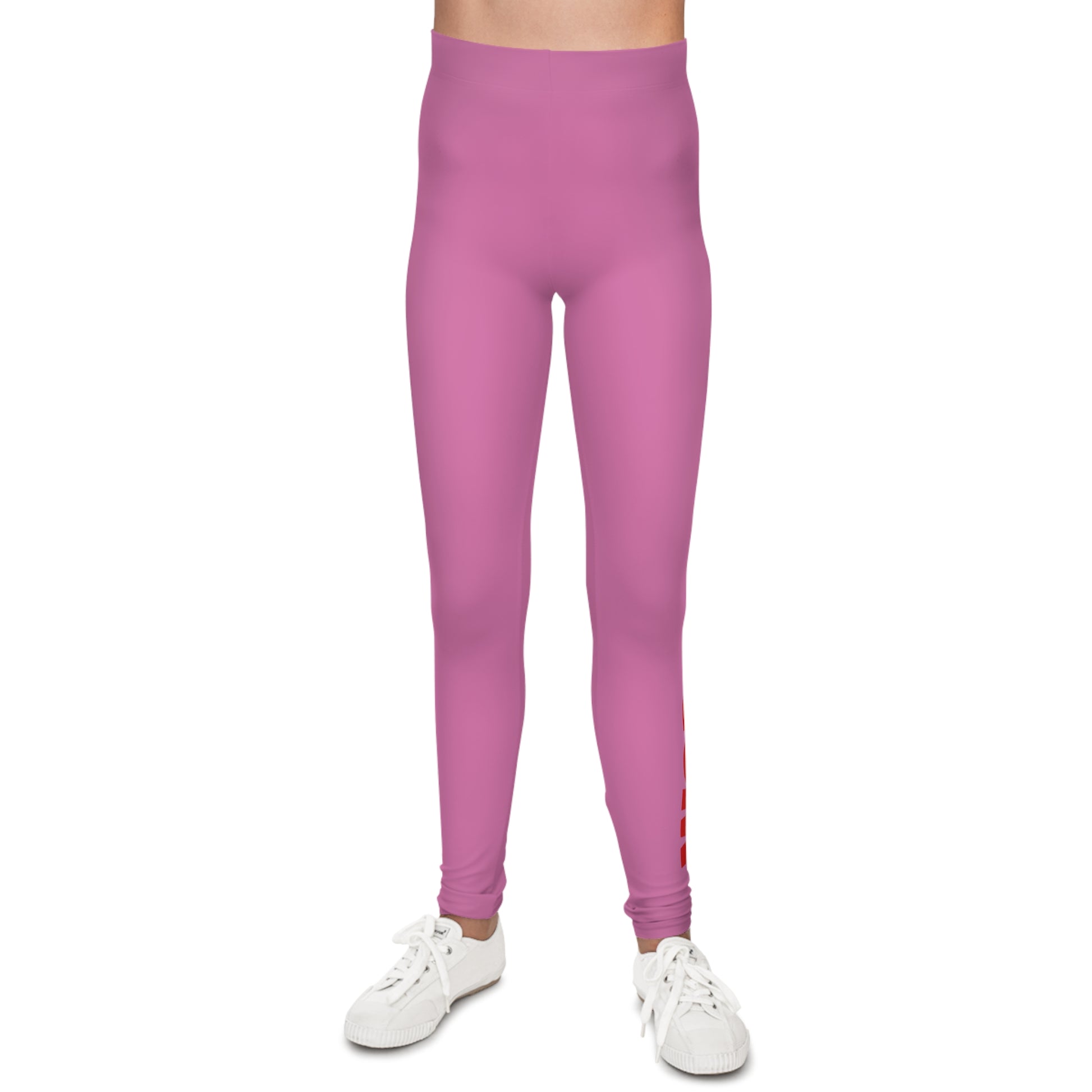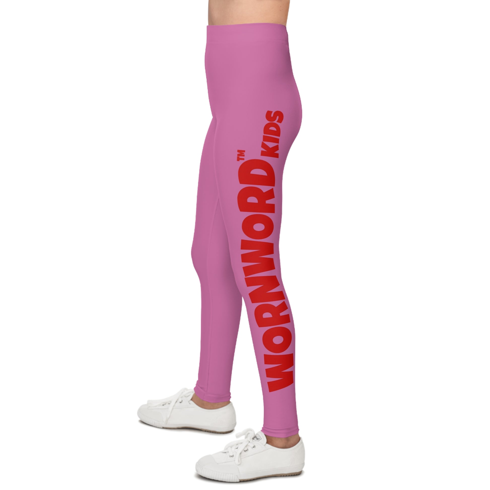 WORNWORD Kids™ ColorVibeZ™ Youth Leggings - Pink with Red Script