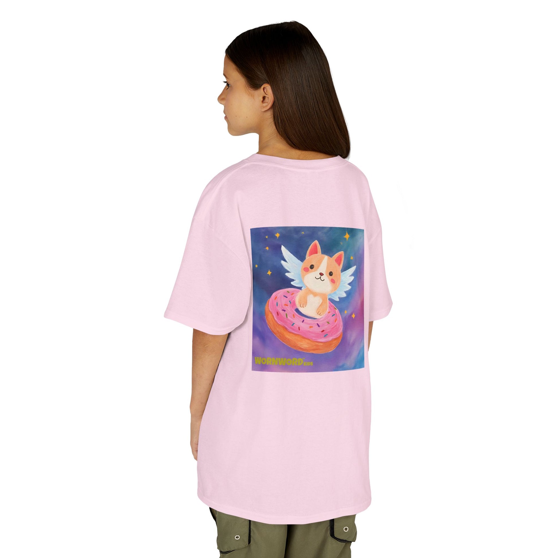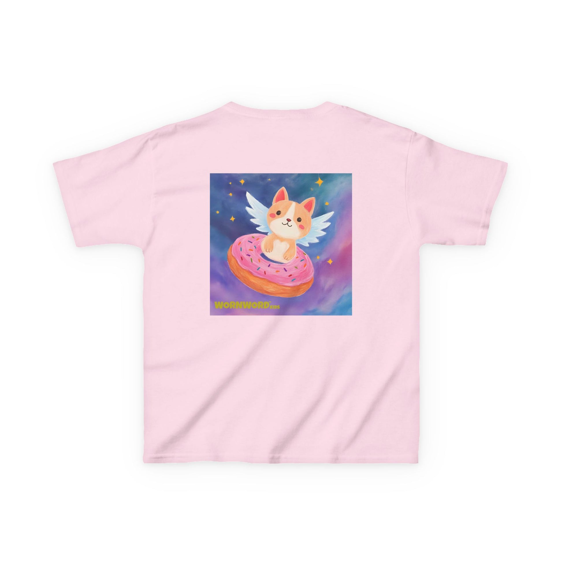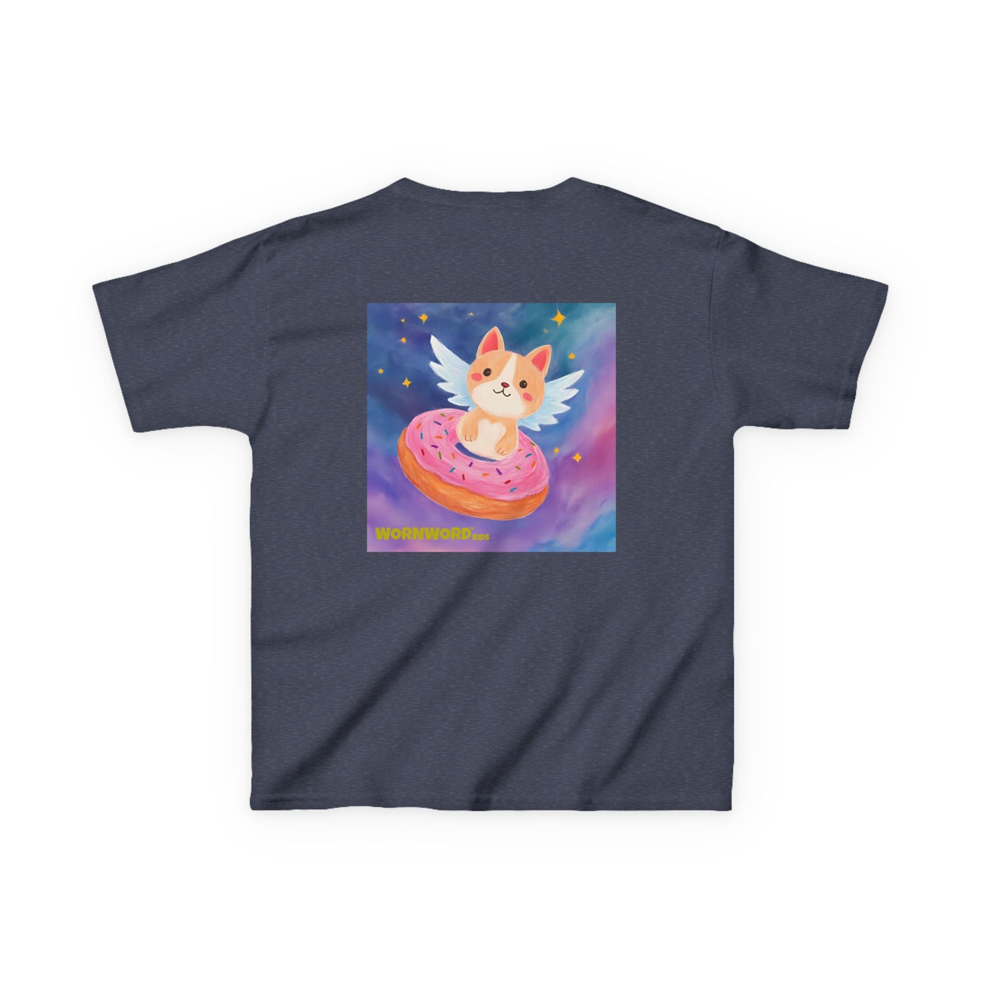 The WORNWORD Kids Mid-Weight Tee launches young imaginations into a sugar-swirled universe with a flying cat soaring through a galaxy of donuts and sparkles. Whimsical, colorful, and full of charm — this tee is made for kids who dream in color and rule their own worlds.
