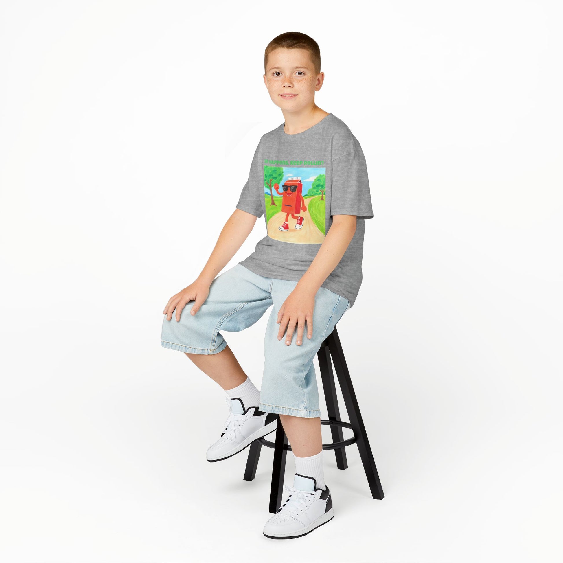 Crafted from 100% midweight US cotton (5.3 oz/yd² or 180 g/m²), this tee combines softness with toughness, ready for everyday adventures. Heather options blend cotton with polyester for enhanced print quality and durability. Its classic crewneck and comfortable fit make it a favorite for recess, park hangs, and spontaneous dance moves.