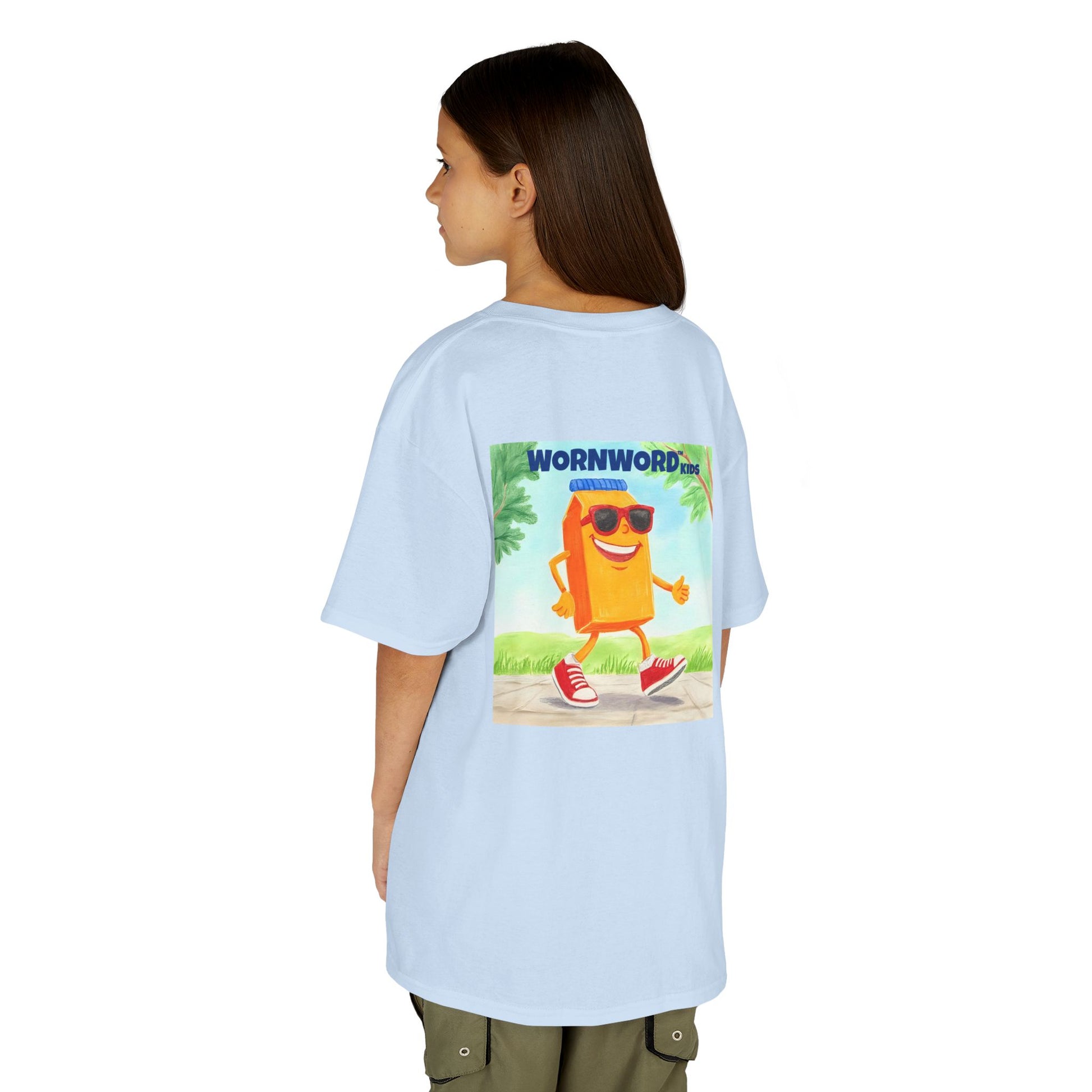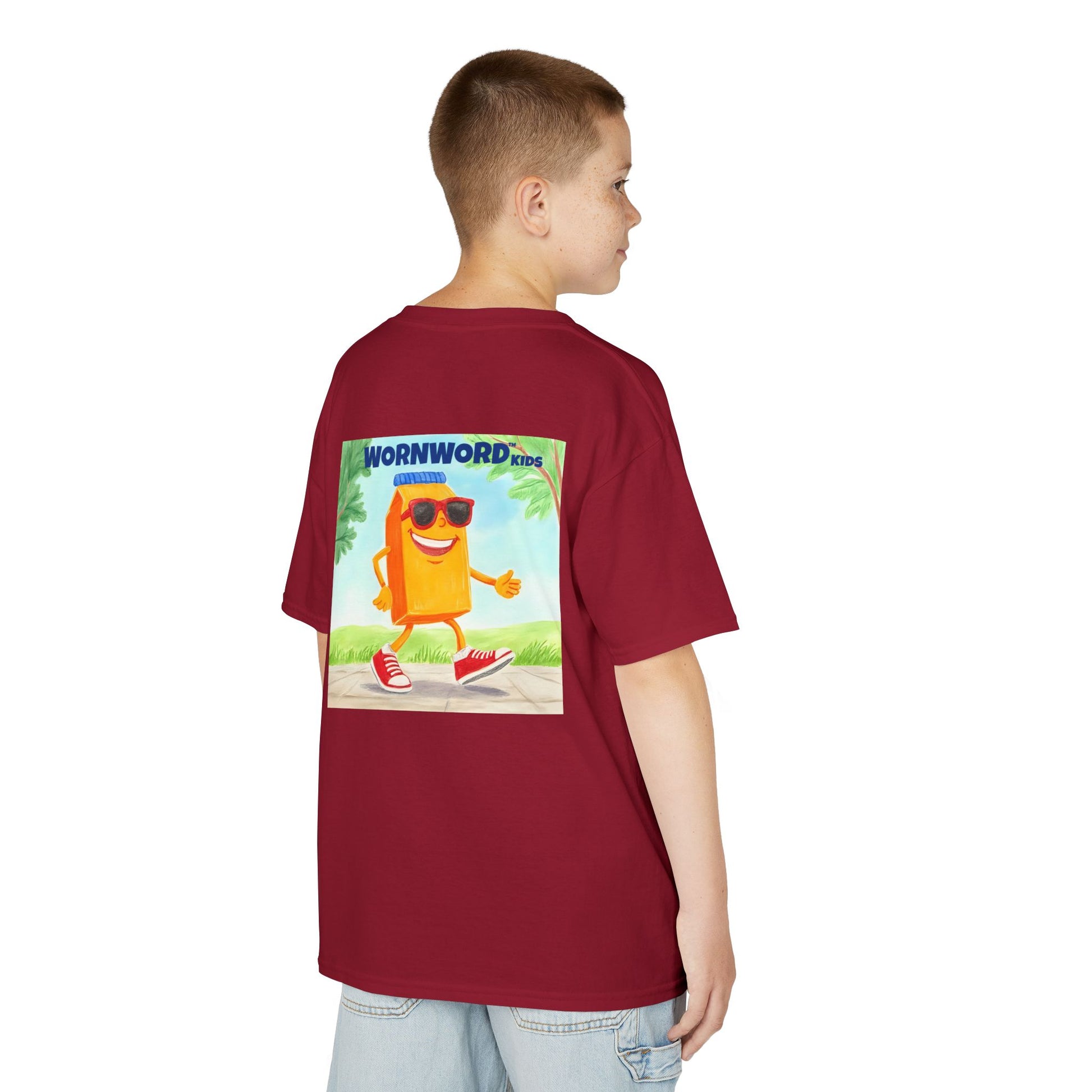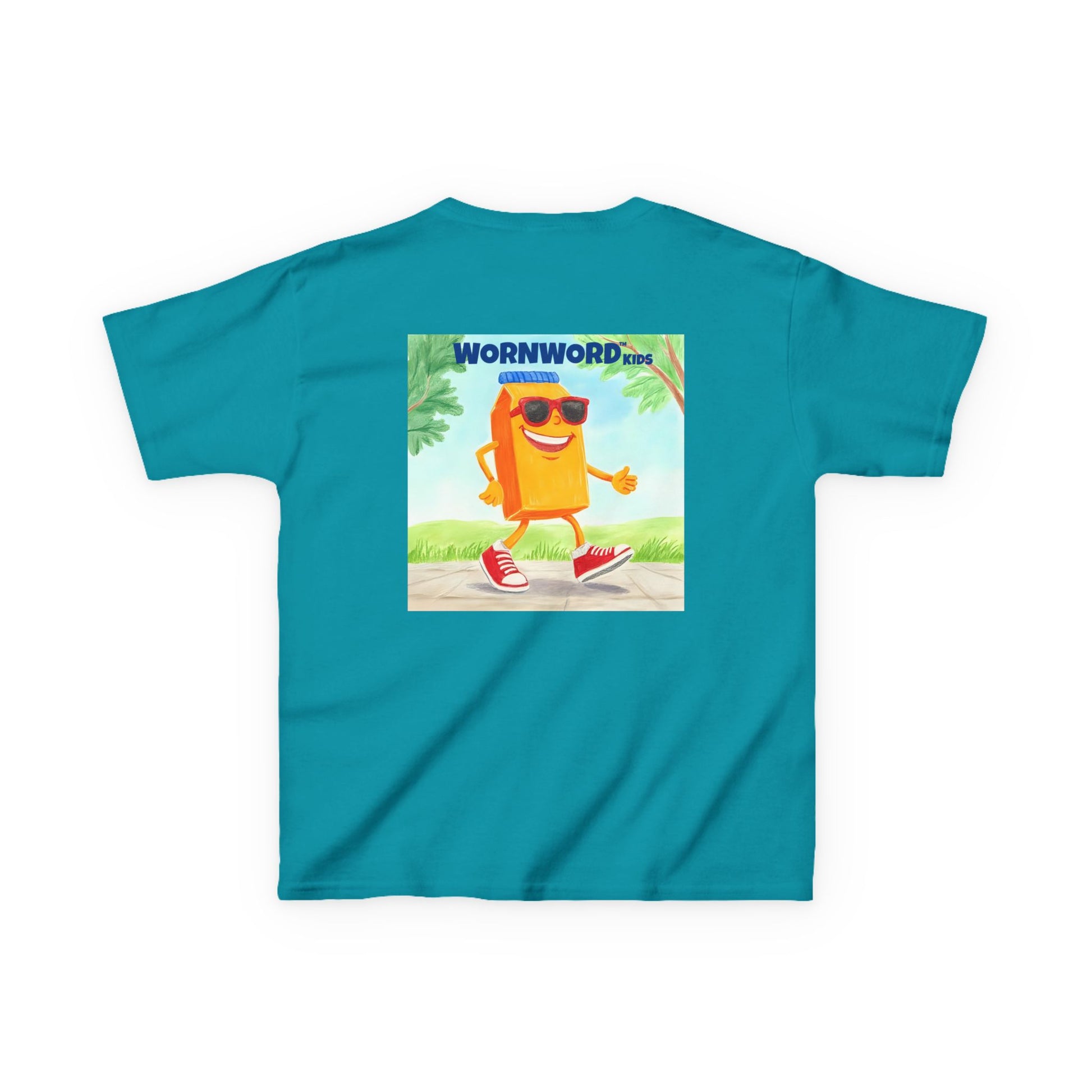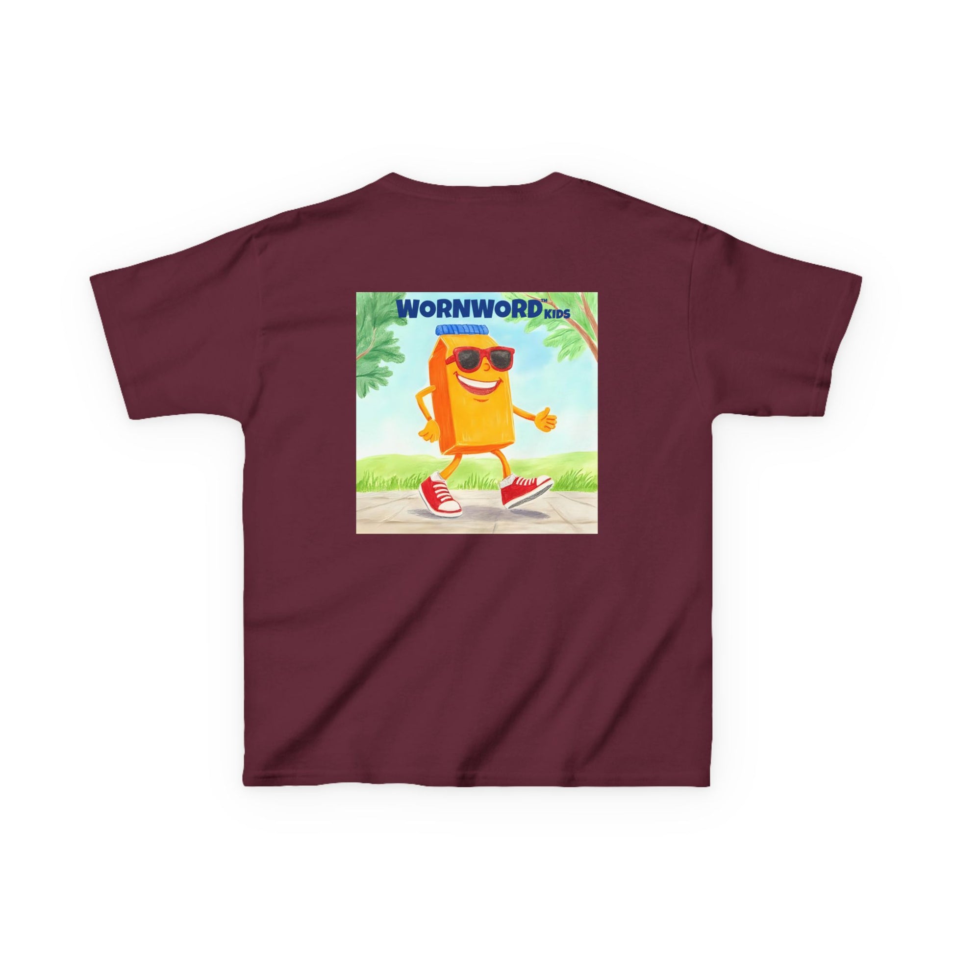 The WORNWORD Kids Mid-Weight Tee brings cool confidence to life with a fun-loving juice box strutting across the park. Decked out in sunglasses and sneakers, this playful design is made for kids who walk their own way—bold, bright, and unbothered.