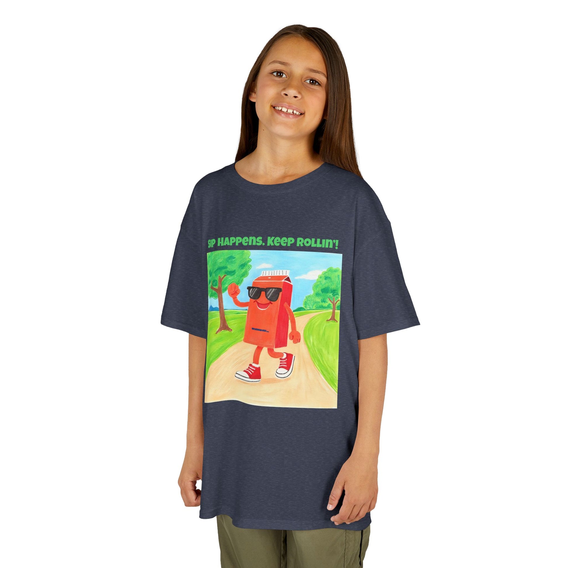 WORNWORD Kids Mid-Weight Tee - Walking Juice Box “Sip Happens. Keep Rollin’!