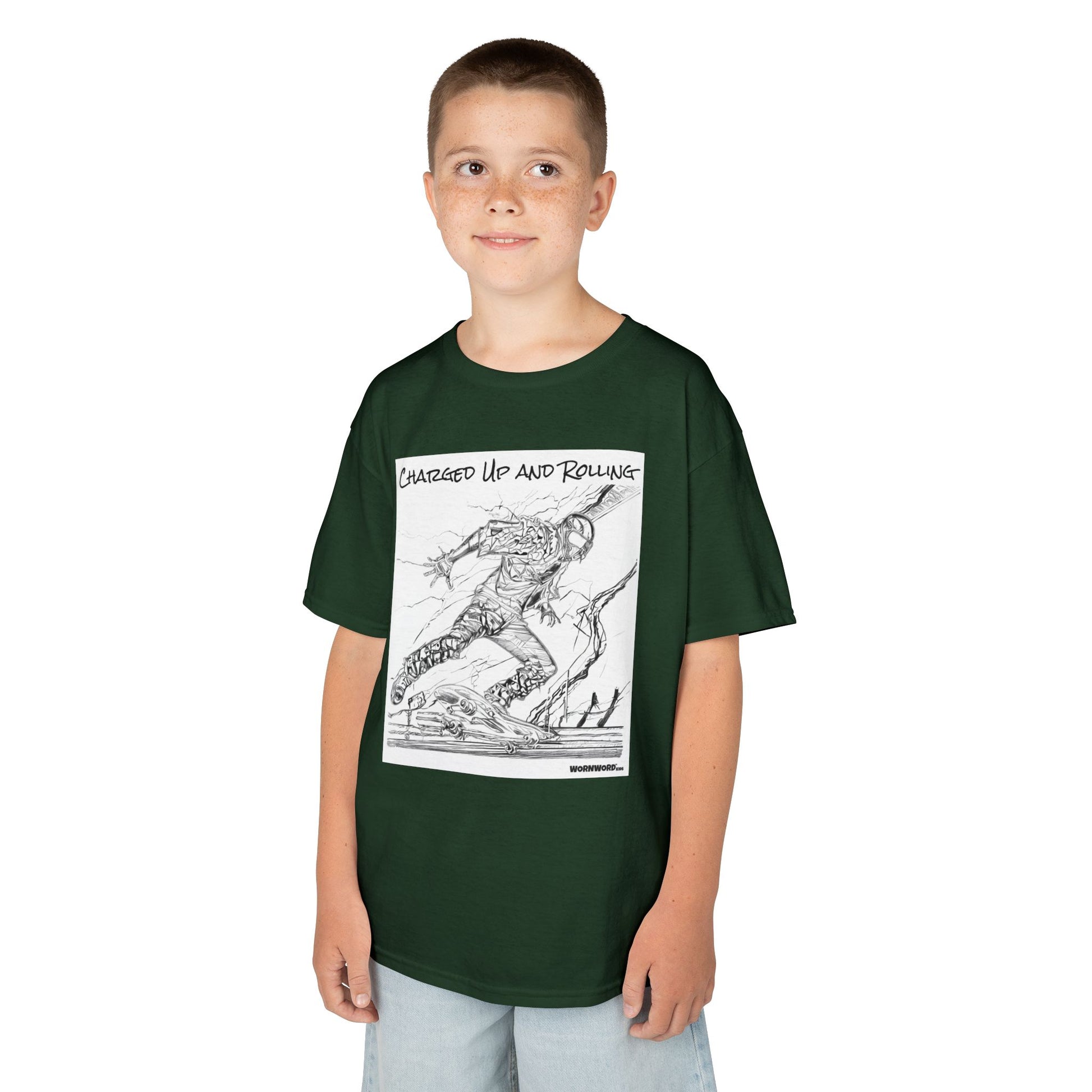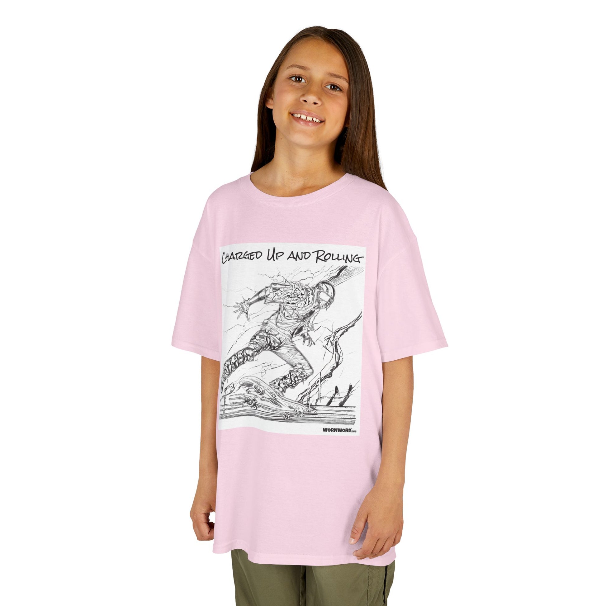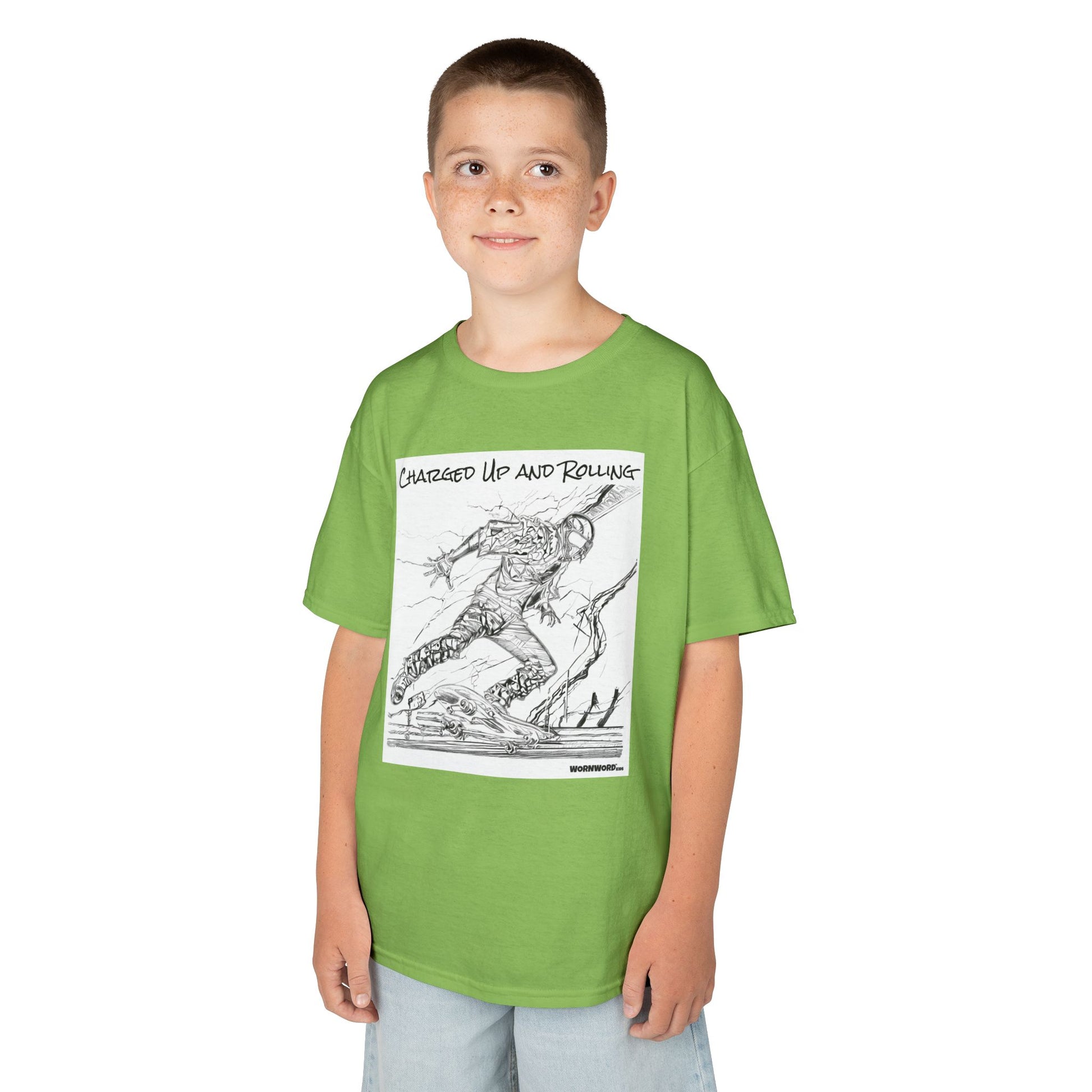 WORNWORD Kids™ Youth Mid-Weight Tee - Lightning Bolt "Charged Up and Rolling!"