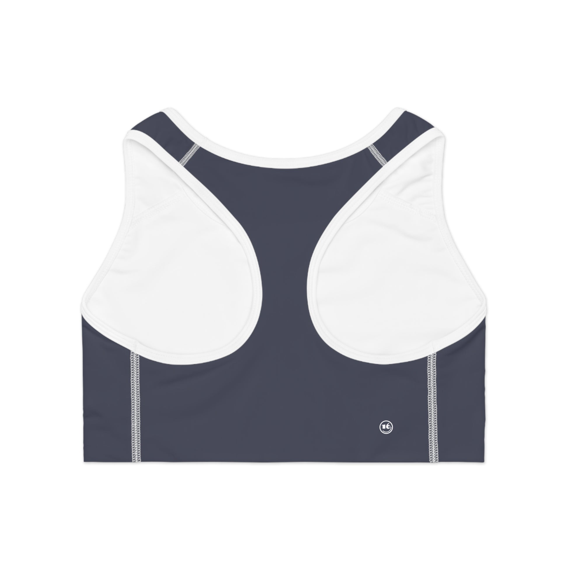 Made with a performance-focused poly-spandex blend and compression fit, this sports bra keeps you dry, supported, and always in style. Your active look, crowned.